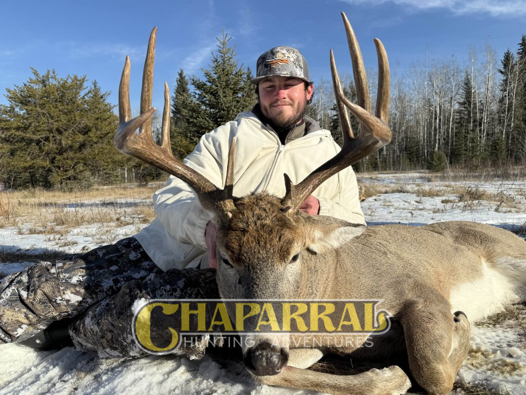 On day 6 Cameron Reeves anchored our week with his biggest Whitetail to date. Cameron displayed incredible patience waiting on this buck. He hunted this deer right from start to the last minutes of his hunt. Congratulations on a great Saskatchewan Whitetail! 155”.